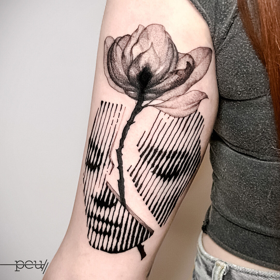Los tatuajes halftone emplean patrones para crear sombras y texturas. Este estilo combina el arte del tatuaje tradicional con una técnica visual única, lo que da como resultado un diseño de tinta distintivo y contemporáneo.